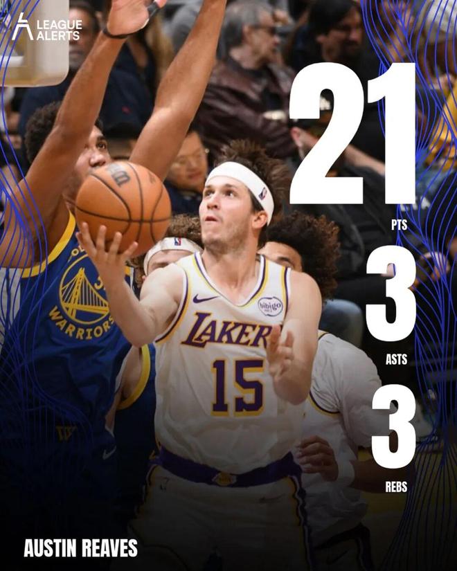 本場(chǎng)之前,湖人還分別與太陽(yáng)、勇士交手,其中第一次對(duì)陣勇士里夫斯缺席,但是季前賽首秀對(duì)陣太陽(yáng),里夫斯的表現(xiàn)相當(dāng)不錯(cuò):全場(chǎng)只打了不到21分鐘,投籃11中6,三分5中1,罰球7中7,得到20分3籃板2助攻。