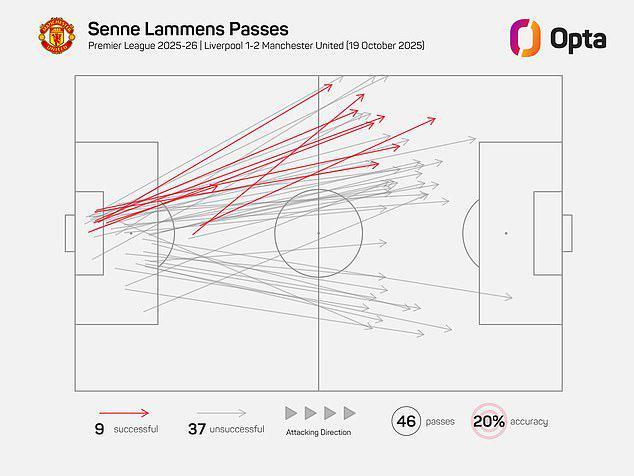 在安菲爾德球場,曼聯(lián)門將森內-拉門斯幾乎將所有46次傳球中的44次都直接長傳出去。面對利物浦前場壓迫如此兇猛的球隊,試圖從后場組織進攻無異于自找麻煩。